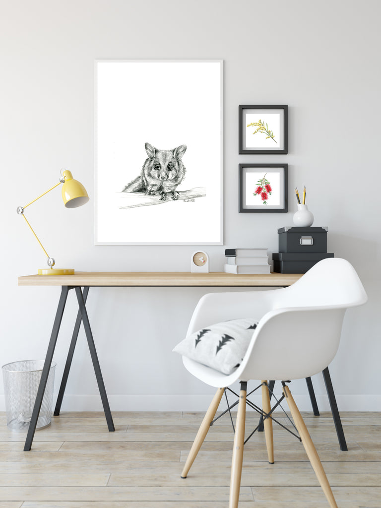 This inquisitive Brushtail Possum has been lovingly drawn by hand with graphite pencil, capturing the gentle personality of one of Australia’s native neighbours. A familiar visitor to many Australian backyards, the possum is both mischievous and endearing. A unique celebration of Australian wildlife, this artwork makes a thoughtful gift or a striking addition to any home—whether your style is modern, rustic, or proudly Australiana.